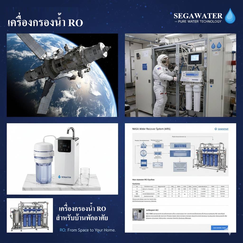 - "แผนผังระบบ Water Recovery System (WRS) ที่ NASA ใช้บนอวกาศ ซึ่งเป็นต้นแบบเทคโนโลยี Reverse Osmosis ในเครื่องกรองน้ำของ SEGAWATER"