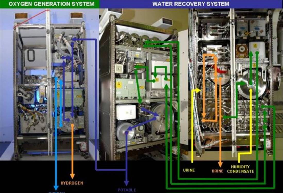เพื่อให้มีน้ำดื่มเพียงพอและปลอดภัยที่สุด NASA จึงได้พัฒนาระบบ Water Recovery System (WRS) ซึ่งใช้กระบวนการ Reverse Osmosis (RO) ระดับสูงในการเปลี่ยนน้ำใช้หรือแม้กระทั่งความชื้นในอากาศ ให้กลับมาเป็นน้ำดื่มที่บริสุทธิ์ยิ่งกว่าน้ำบรรจุขวดทั่วไป